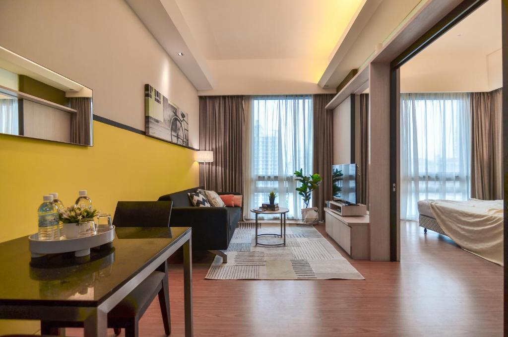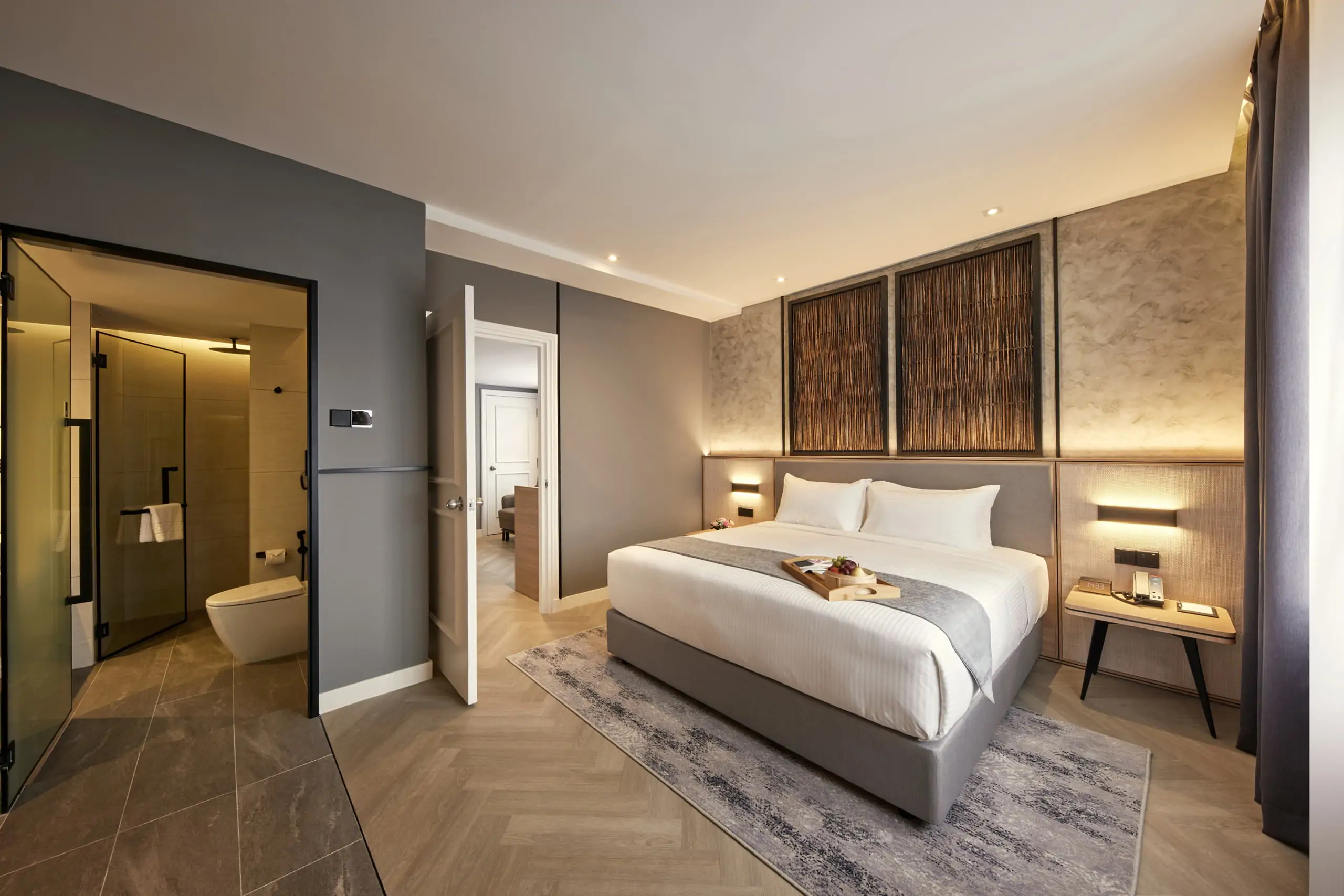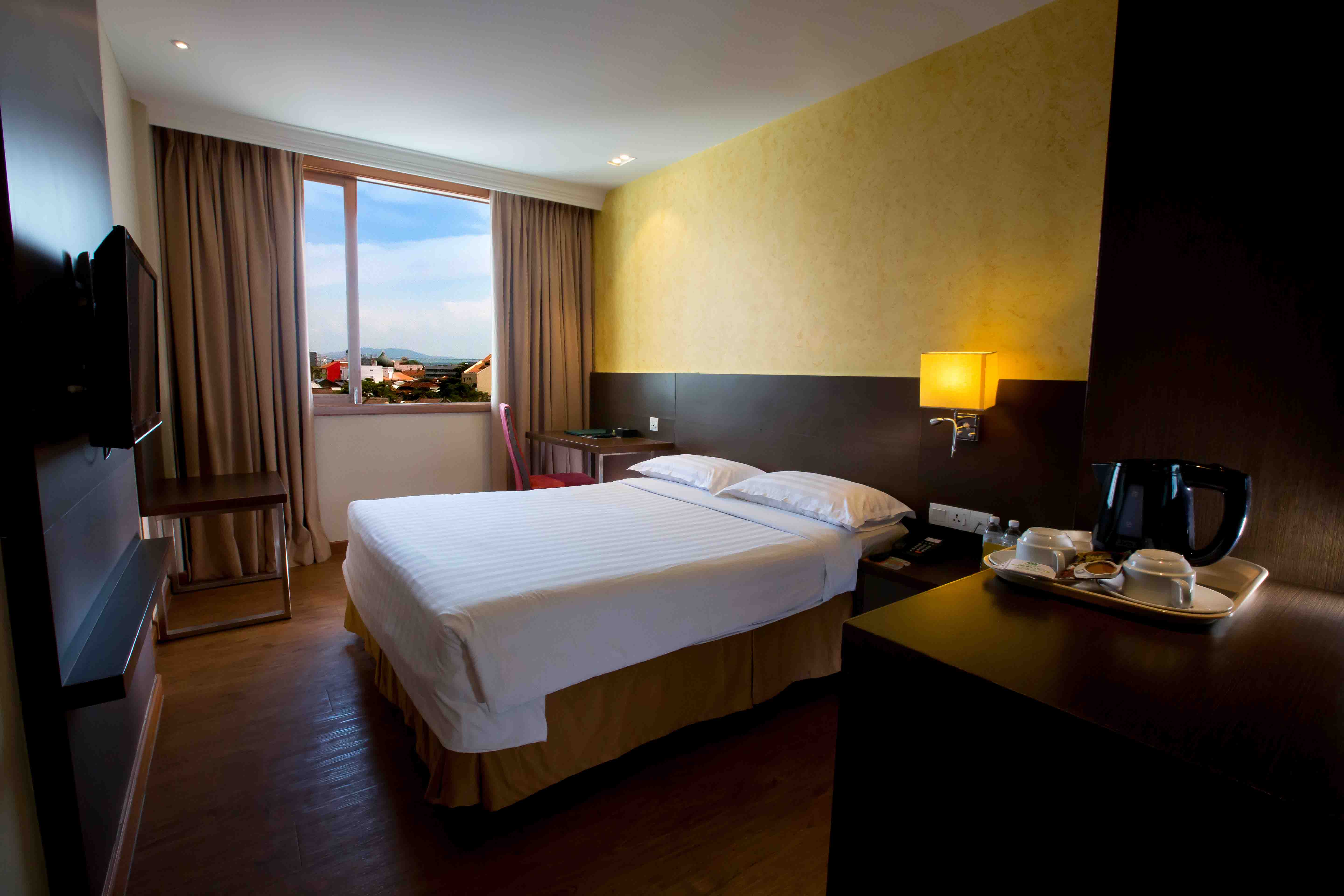 Relax in style with our modern amenities, including a private balcony, smart TV, and 24/7 room service.